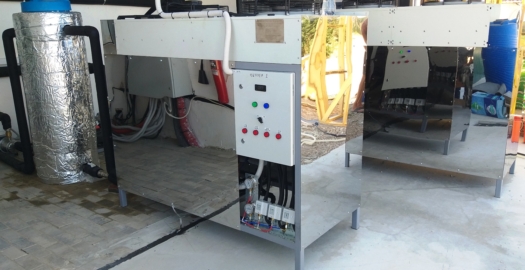 Состав поставки: чиллер среднетемпературный и низкотемпературный, утепленные (50мм k-fkex ST ALU) буферные емкости.